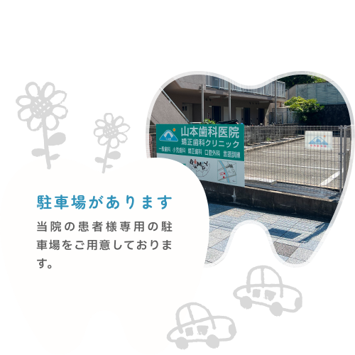駐車場(8台駐車可)をご用意しております。詳しくは医院のご紹介ページのアクセスをご覧ください。