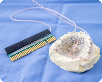 患者さまの状態に合わせてPLPを作製し、言語聴覚士とともに発語の評価を定期的に行いながら装置の調整を行います。