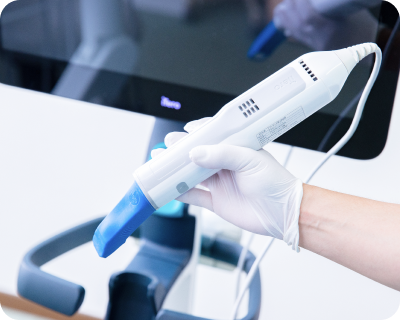 短時間で正確に歯型を取ることができる最新の3 Dスキャナーです。従来のようなペースト状の印象材を使用しないため、患者さまの負担を軽減します。